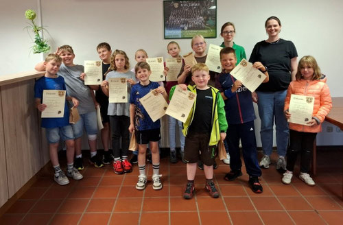 Am Ende wurden alle Punkte zusammen gezählt und die Teilnehmer konnten ein bronzene, silberne oder goldene Urkunde gewinnen. Trotz des regnerischen Wetters haben wir mit den Kindern eine tolle Veranstaltung im Schützenhaus verbracht.