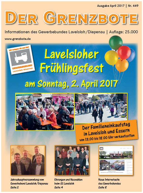 Der Grenzbote erscheint ab 2014 jeden zweiten Monat, jeweils zum 1. Mittwoch des Monats. Anzeigen- und Redaktionsschluss ist der 15. des Vormonats. (Änderungen vorbehalten)